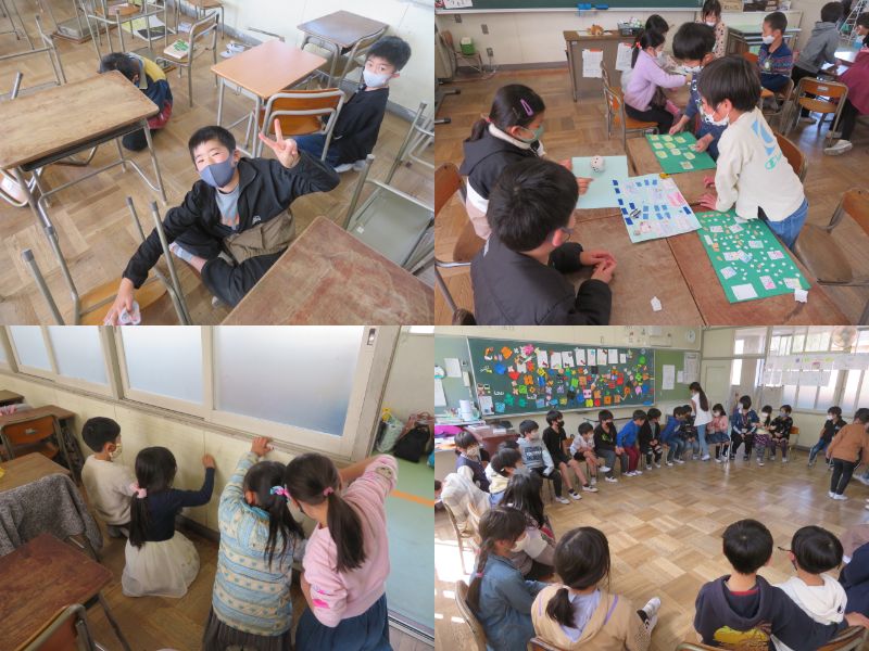 5時限目に校舎内を回って教室を覗くと、大掃除やレクリエーションを行っている学級がほとんどでした。一年間使用した机や椅子・ロッカーなどを、感謝の気持ちを込めて一生懸命綺麗にしていました。レクリエーションはフルーツバスケットや双六など様々でしたが、学級の仲間たちとの最後の触れ合いを心から楽しんでいました。