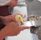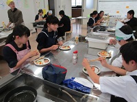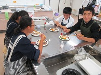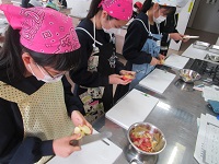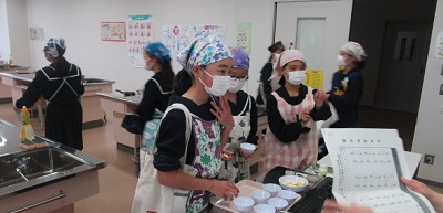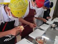 週に1時間しかない授業の貴重な1時間で、調理から試食までを完了するには、グループで協力し合うことと事前の綿密な学習がポイントとなります。