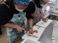 次から次へと到着した子どもたちが、事前学習に沿って準備し調理し始めます。