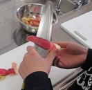◆2年家庭科 調理実習「鮭のムニエルと温野菜サラダ」