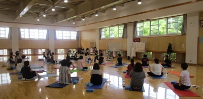 本日10:00~11:30、本校武道場で滝口かおり先生をお呼びしてヨガ教室を開催しました。