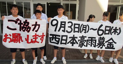 子どもたちの発案で西日本豪雨募金を6日(木)まで行いますので、ご協力よろしくお願いします。