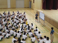 本来は夏の日差しの中で冷たいプールに入り、気持ちよく泳がせたいのですが、本校プールは竹の山小学校と共有しているので、時間割の調整がとても難しく、長期間水泳の授業を実施しています。