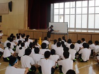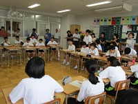 子どもたちが手を取り合いながら成長することを願い、『天国と地獄の長い箸』というお話をしました。