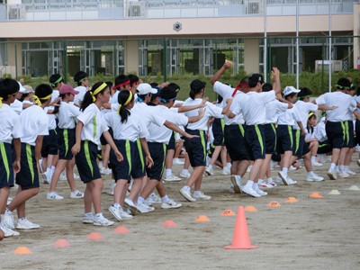 本校のグランドは水はけがよいので、長縄跳びが実施できるまで回復すれば、午後日程で3種目を行いたいと考えています。