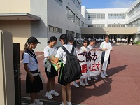 登校する小学生、中学生も、笑顔で力強く挨拶を返してくれました。