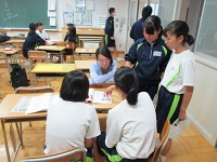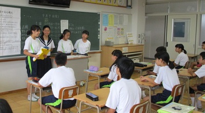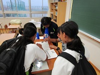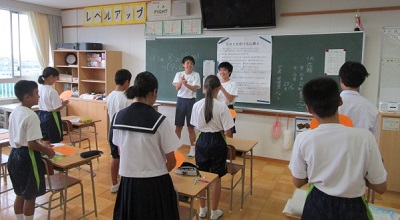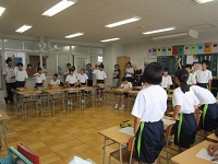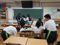 今朝のSTでは、3年生が1.2年生の教室に出向き、座席応援のパターンを説明し練習する様子が見られました。