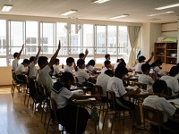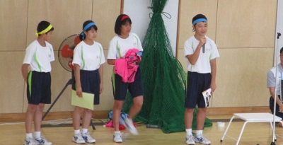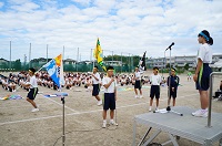 1年、2年、3年生が同じ色のハチマキを付けて、お互いに応援して盛り上げようという取組です。