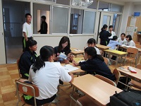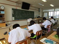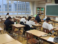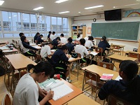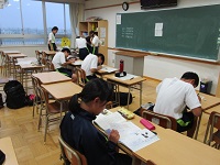 雨で薄暗い中、どの学年も教室に明かりを灯し、自主学習会を開いていました。