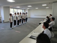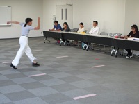 ダンス、コント、演奏の分野で有志発表を目指す13組が、大会議室の審査員の前で腕前を見せます。