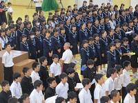 本日テスト終了後は、避難訓練と学活を行い給食を食べて下校しました。