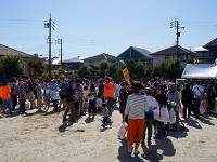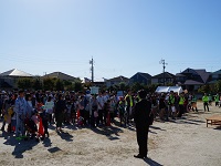 第1回の訓練では、小学生や保育園児も一緒に避難しました。