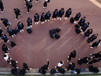 卒業アルバムに載せる写真選びを実行委員が行っていました。