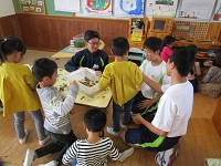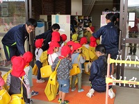 今回は、お隣の施設すくすく園の子どもたちも日程を合わせて避難訓練を行いました。