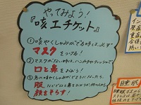 市内でインフルエンザによる学級閉鎖が出ていますので、引き続き予防対策の強化をお願いします。
