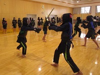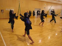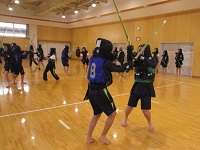 ほとんどの子が昨年度の授業で初めて竹刀を握った子なのですが、基本動作を身につけ、立派に打ち合っていました。