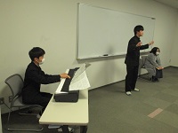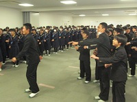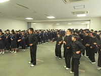 今日の授業では、試合をする前と終りの「礼式」の練習をしてから、約束のない打ち合い(地稽古)を何度も行いました。