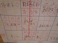 期間中、毎日帰りの会でどんなフワフワ言葉と出会ったかを聞き、☆印で枠を埋めていきます。