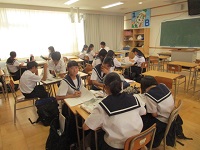昨日授業後、市役所より日進市総合計画策定の職員にお越しいただき、これからの日進市の目指す姿について、後期生徒会役員とワークショップを行いました。