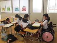 靴を履き替えることもなく、ちょっと歩いて移動すれば交流活動ができるという併設校の利点を生かした取組です。