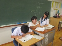 部活動がないこの週間の自主学習会は、やる気のある子どもたちを前に、先生たちもうれしく参加しています。