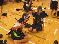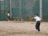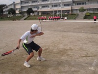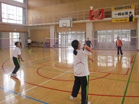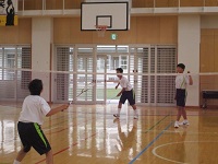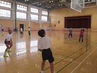 バドミントンの授業では、ラケットのシャフトの長さに慣れるまで空振りが目立つものなのですが、上手にシャトルをヒットしゲームが盛り上がっていました。