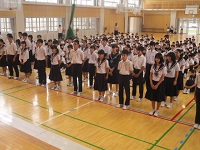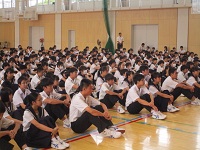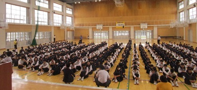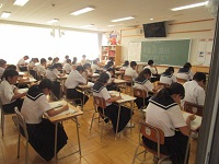 教員講話では、ラグビーワールドカップを引用し、よりよいクラスの形成や合唱コンクール成功への意識高揚を図りました。
