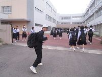 正門であいさつをしながら子どもたちを出迎えていると、いつもと違う空気を感じました。