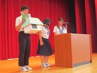 午前の部は、ステージで子どもたちの融資発表が行われました。