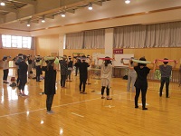 くりのき学級の体育で、バドミントンを体育館で行っていました。