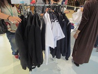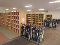 リサイクル活動で回収した制服や体操服などを、体育館入り口前に展示し、無料で配布しました。