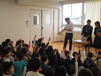 併設の竹の山小学校の子どもたちにも、たくさん聞きに来てもらいました。