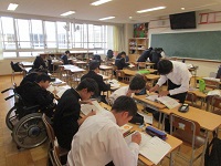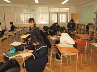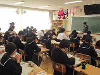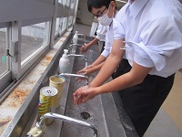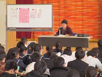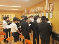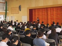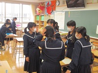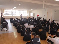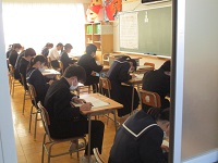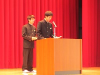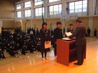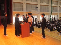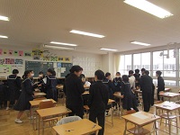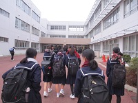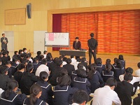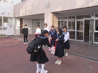 本年度は、かねてより「冬場に男子もコートを着させたい、着たい。」という声をいただいていた点について検討し、①安全であること、②中学生らしい服装であることを基盤に、生徒と共に考え、春の生徒総会の折に「男女共通ルールとして、制服の上にコートを着用してもよい」を示しました。