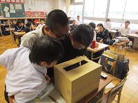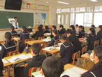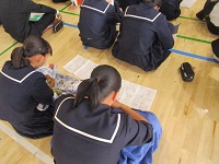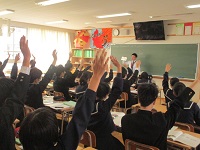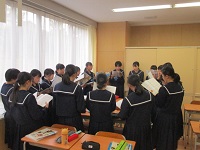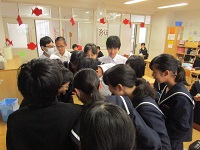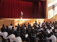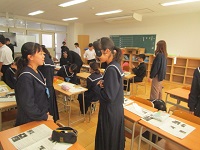 今朝は全校集会を持ち、様々な形状のコート類を提示しみんなで考える場を持ちました。