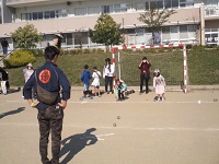あまりの人の多さに、登校してくる子たちはびっくりです。