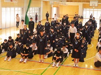 およそ900名の児童生徒が、5分30秒で運動場への避難を完了させました。