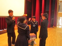 男A.剣道と聞くと、「痛い、臭い」などのイメージがあるかもしれませんが、そうではなく、「時に楽しく、時に厳しく、メリハリのある部活動」です。心配せずに、見学や体験入部に来てください。