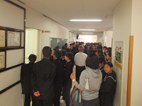 中学生の登校のピークはもう少し遅いので、混雑は緩和されていました。