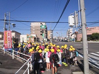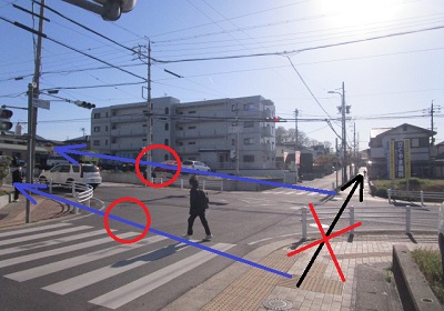 「岩崎竹の山西」交差点では、8:00~8:10の間は小学生の登校で大変混雑しています。