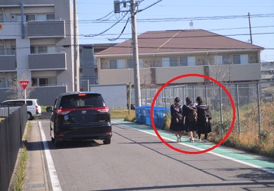 車の交通量は少ないのですが、どの路地から子供が飛び出してくるのか心配な箇所でもあります。