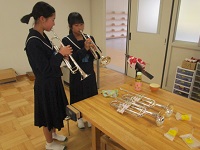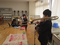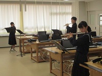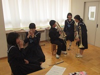 A.初心者も、男子部員も大歓迎です。私たちの中には、中学生から楽器を始めた人も多くいます。コンクールや定期演奏会、学校や地域のイベントで一緒に演奏しませんか。