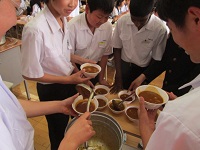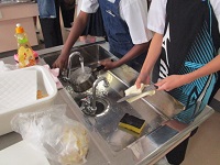 やかんの片づけ方や、しゃもじについたご飯の処理の仕方など、ちょっとした心遣いをすることで、給食センターの方が大変助かるのです。