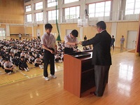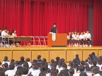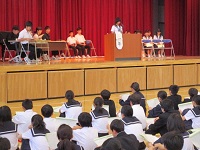 実際に制服等を着用する子どもたちの中から出てくる疑問点を、生活委員会を中心に子どもたちで話し合い決めたことを伝えました。