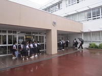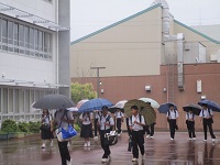 昨夜の大雨は緩みましたが、子どもたちは雨の中の登校です。