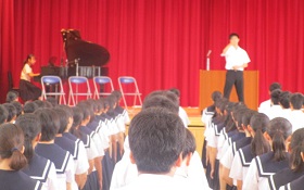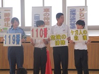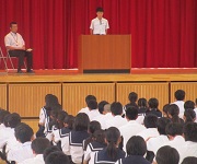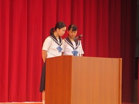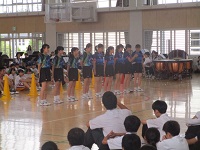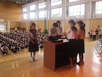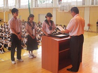 式辞では、先日行われた支所大会やコンクールで、勝負に真剣に挑む美しい姿、仲間を心から応援する美しい姿をほめたたえました。