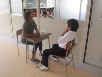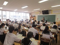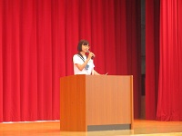 全校生徒を前に、物おじせずに発表する姿にたくましさを感じました。
