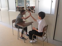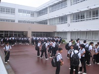 体育館への入場は、予定時間よりも早く、静かに整列できました。