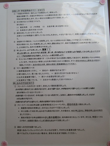 また、修学旅行や野外活動については、予定通り実施するのか、中止するのか、内容の変更をするのかは、まだ世の中の状況や動向を確認していることを伝えました。