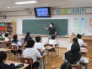 本日は5時限目に、交通安全の意識向上を目的に1年生が交通安全教室を行いました。愛知県警察本部と愛知警察署より講師を招いて、安全な自転車の乗り方についての話を聞きました。自転車に乗るときには、