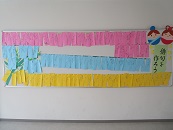 2年生の掲示板に、生徒の思いや願いを込めた七夕飾りが掲示されました。「資格試験に合格しますように」「定期テストで〇点が取れますように」「コロナがなくなりますように」「〇〇が上手になりますように」などたくさんの思いや願いが書いてありました。